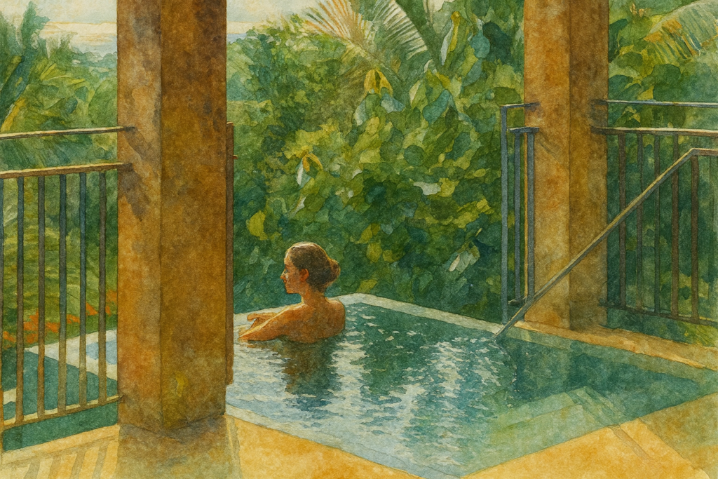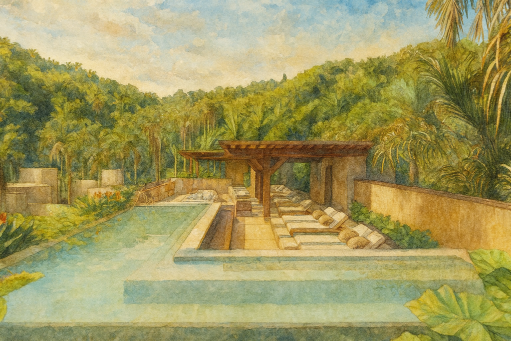 Allí, caminar descalzo sobre agua de rosas, recibir un xukuri sagrado y pasar a salas al aire libre conecta cada tratamiento con el paisaje.